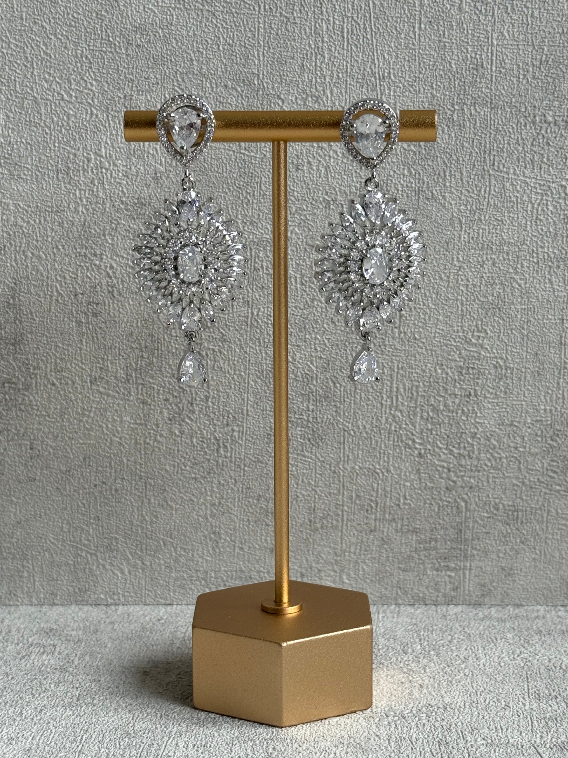 Each piece is a celebration of light — designed to shimmer with every movement. The intricate craftsmanship brings out layers of sparkle, while the delicate teardrop dangles add just the right touch of fluidity and grace. The coordinating earrings balance elegance and drama, making them the perfect statement for formal occasions or bridal soirées.