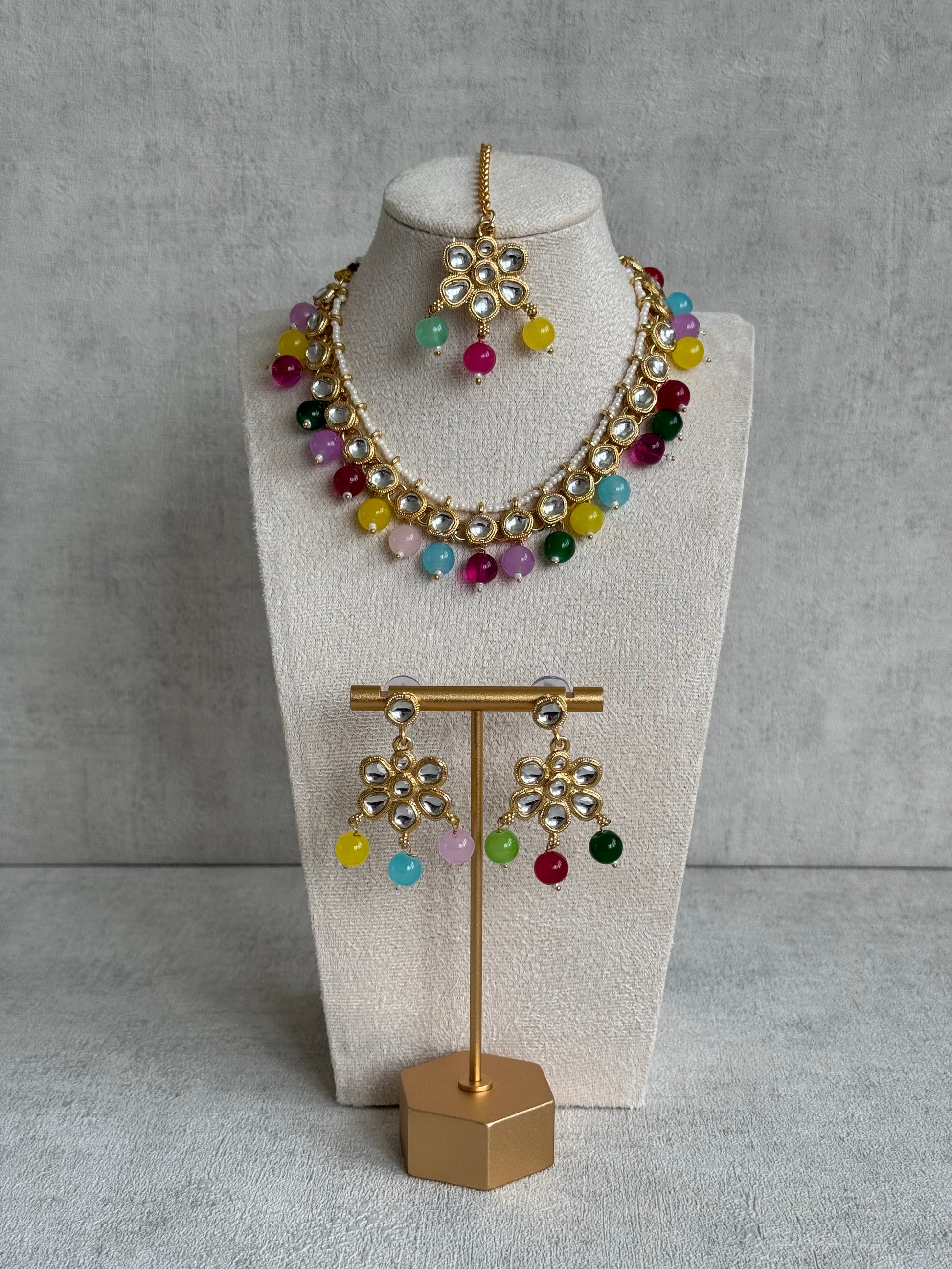 For a look that’s airy, light, and full of freshness, the Mint Green Dalia Set is your go-to. This variation maintains the signature floral kundan work but introduces pale mint beads that bring a soft and contemporary touch. The overall effect is calming and clean, making it perfect for outdoor ceremonies, spring weddings, or daytime events.