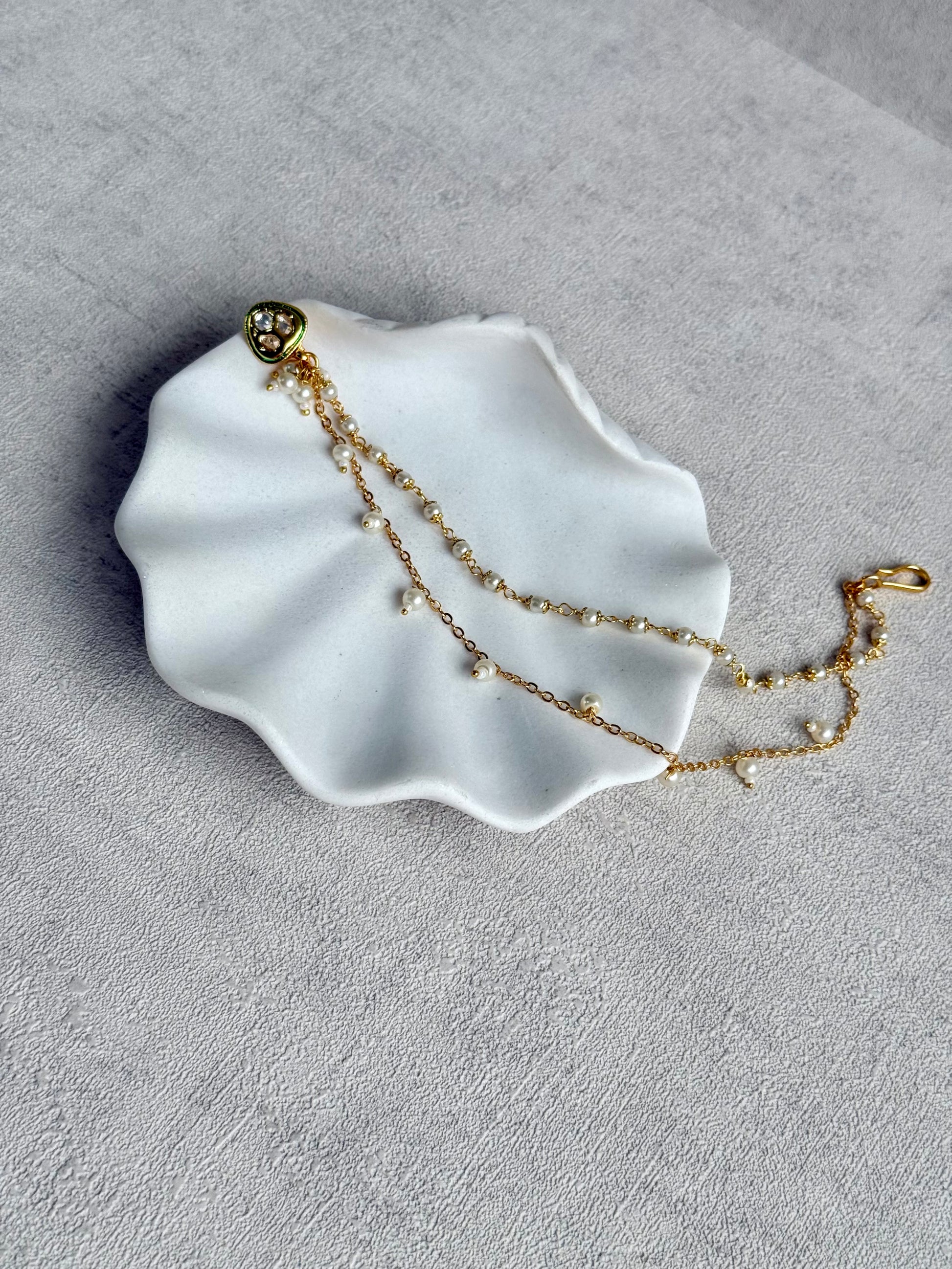 Ayura Designs Fakira Nose Ring – Kundan-Style Detailing with Pearl Chain