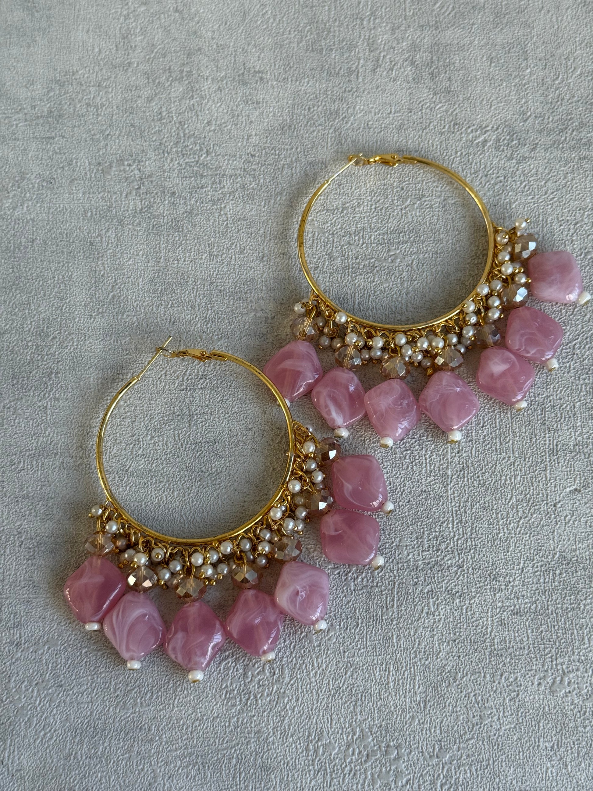 The Baby Pink Marble variation brings an effortless elegance — graceful, refined, and perfect for adding a touch of colour without overpowering your look. The smooth, rounded beads catch the light with every movement, giving a soft, glossy sheen reminiscent of rose quartz. Lightweight yet statement-worthy, these balis are as comfortable as they are striking, making them ideal for daytime festivities, wedding events, or festive soirées.