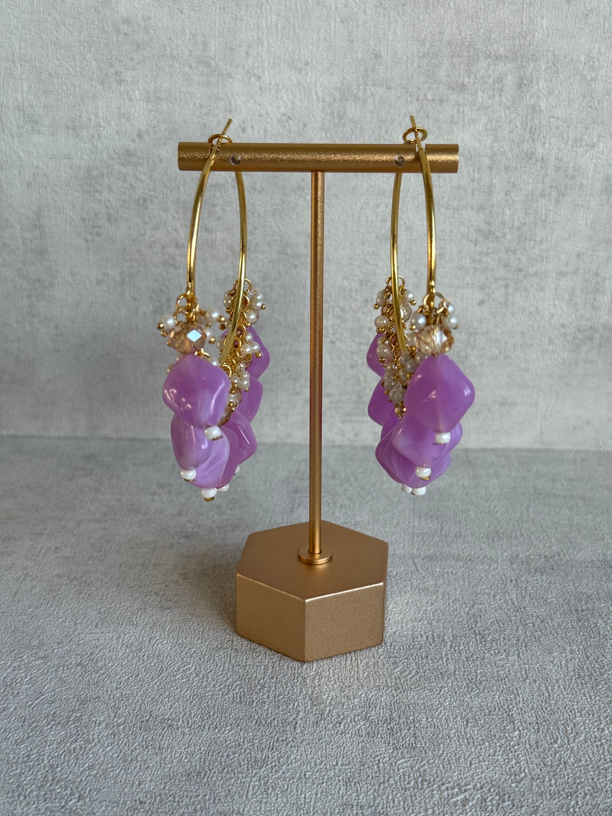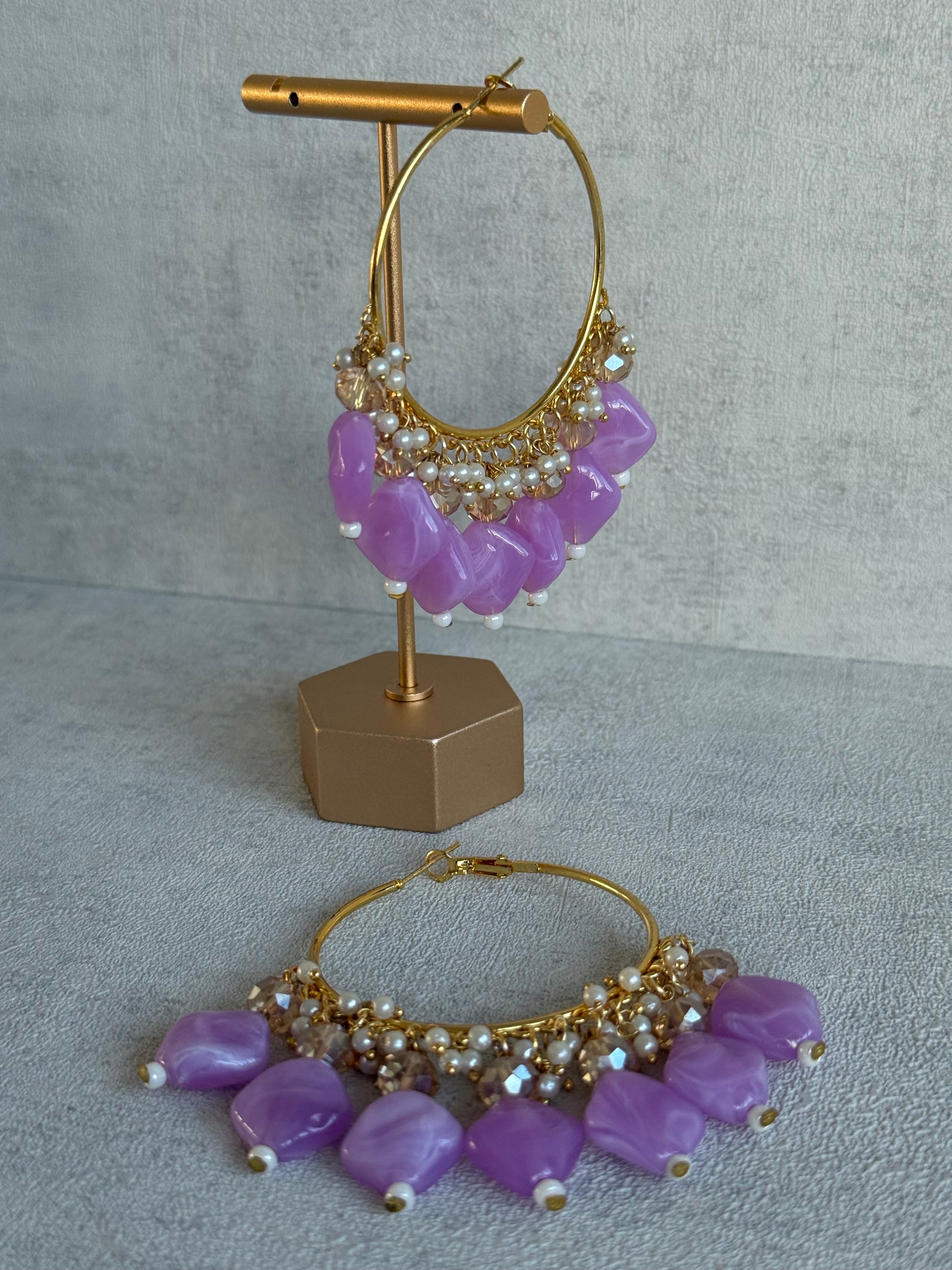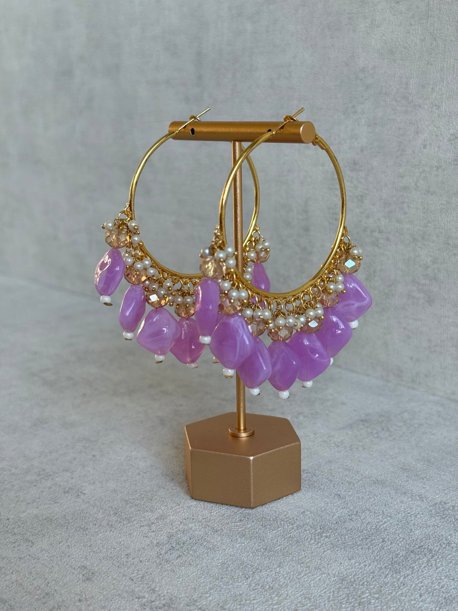 Ayura Designs Heer Balis – Gold Hoops with Lilac Marble Beads, Pearls & Crystal Detailing