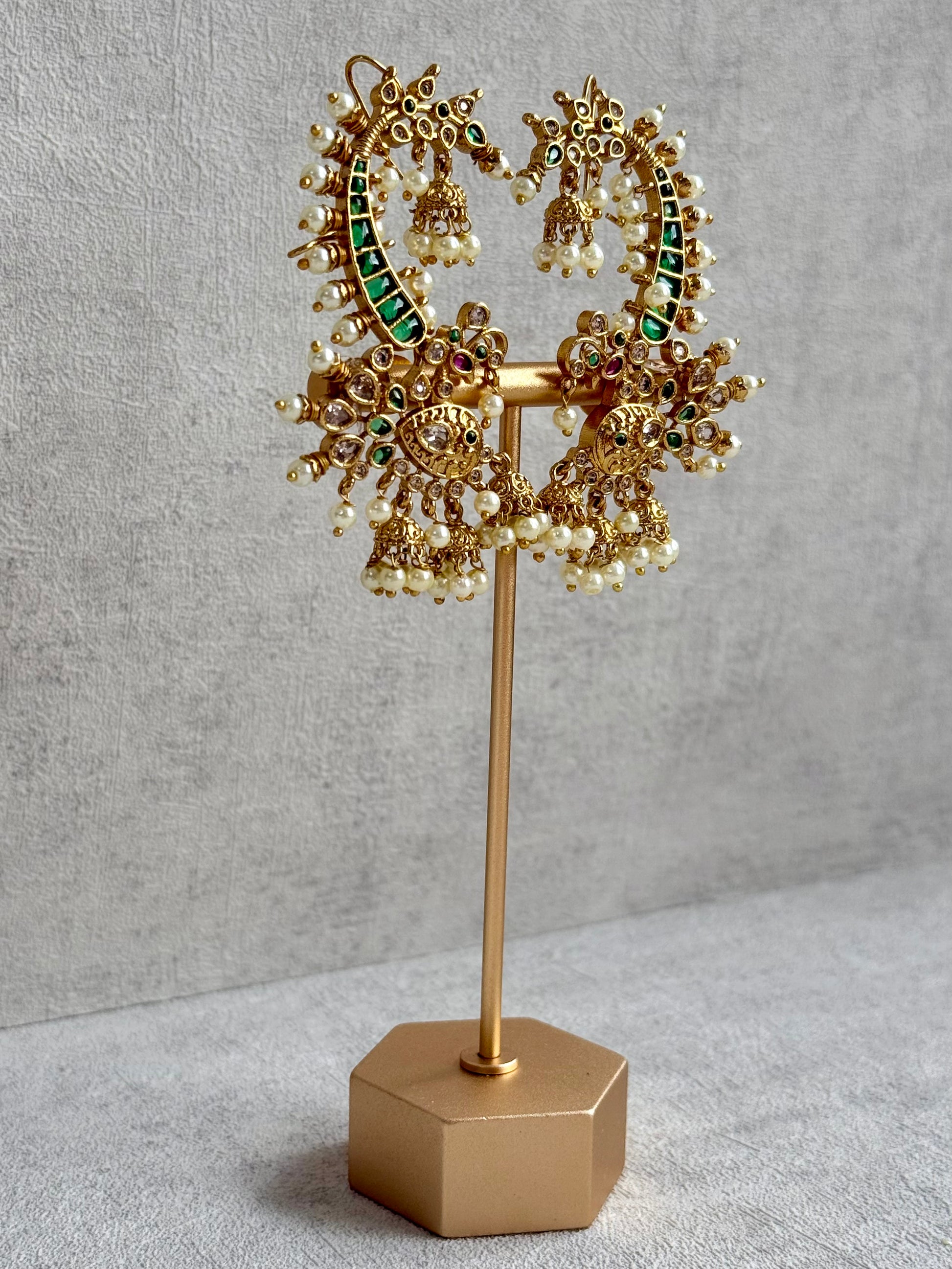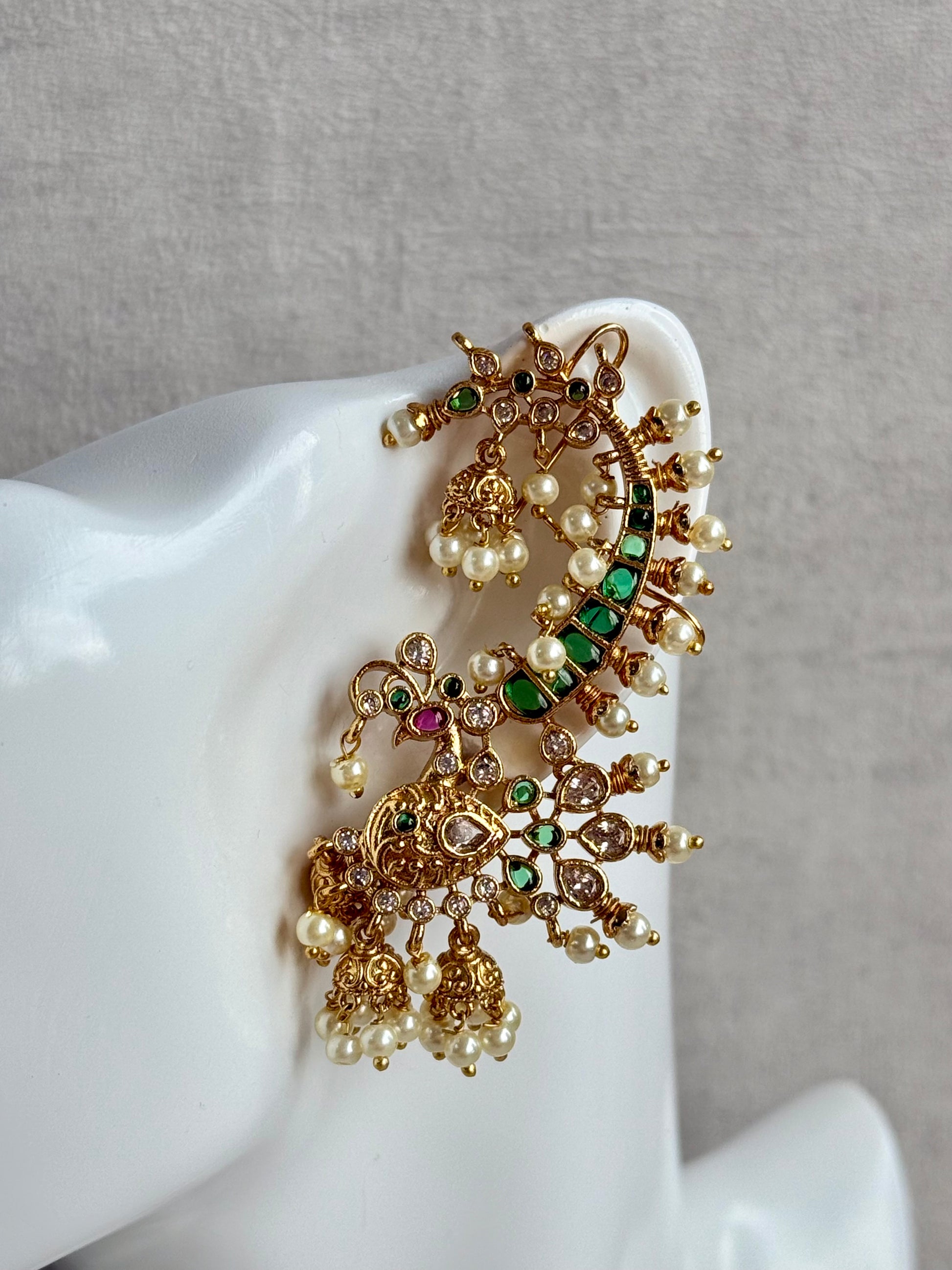 The Megha Half Ear Cuffs are a striking statement design inspired by traditional peacock motifs, crafted in a rich gold-tone finish. Designed to curve gracefully along the ear, this half ear cuff style creates a dramatic yet elegant silhouette without overpowering the look.