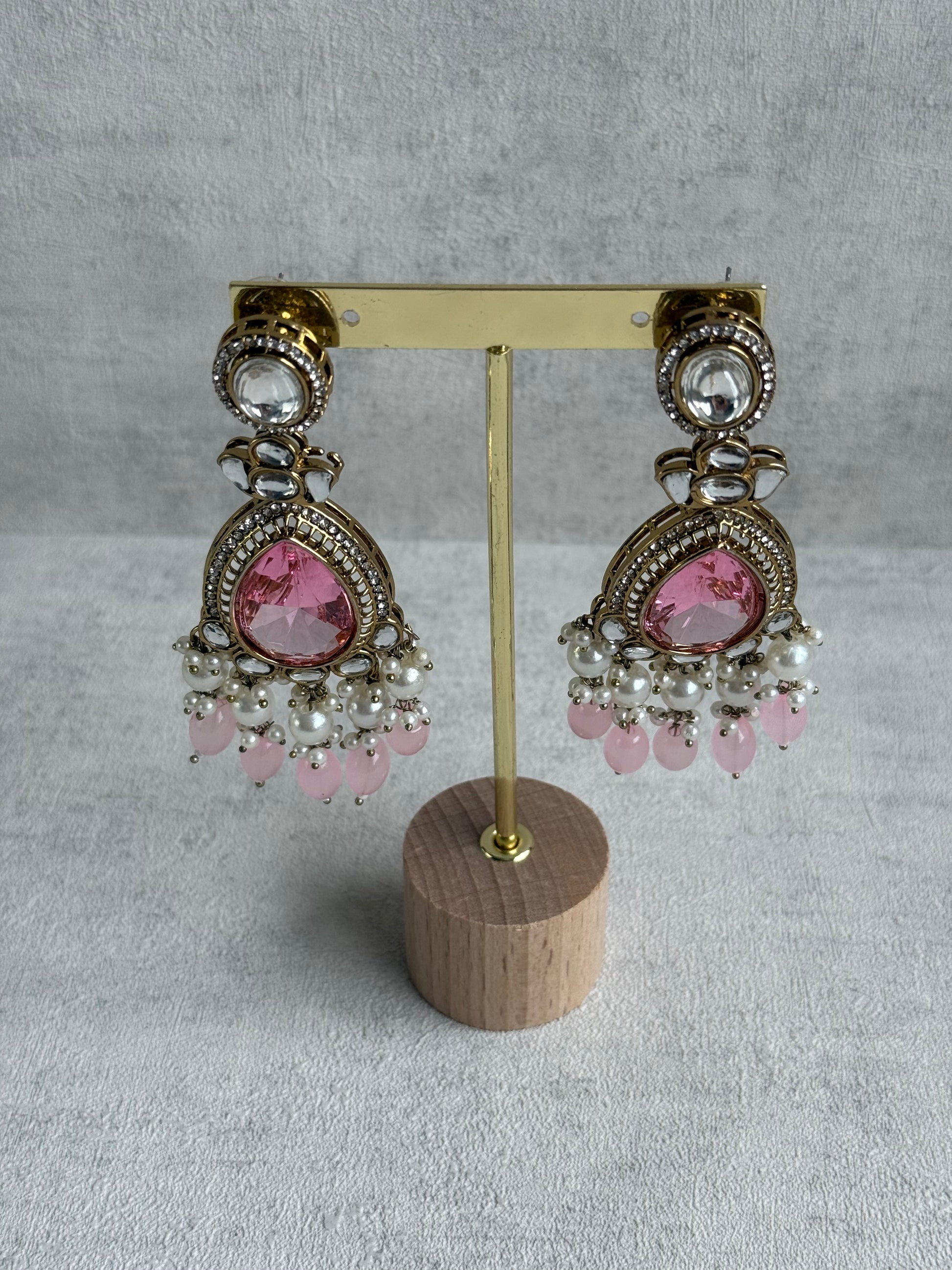 Elegant yet versatile, these earrings pair effortlessly with both bridal ensembles and understated festive outfits. The antique gold detailing softens the vibrancy of the pink stones, making them ideal for day-to-night wear.