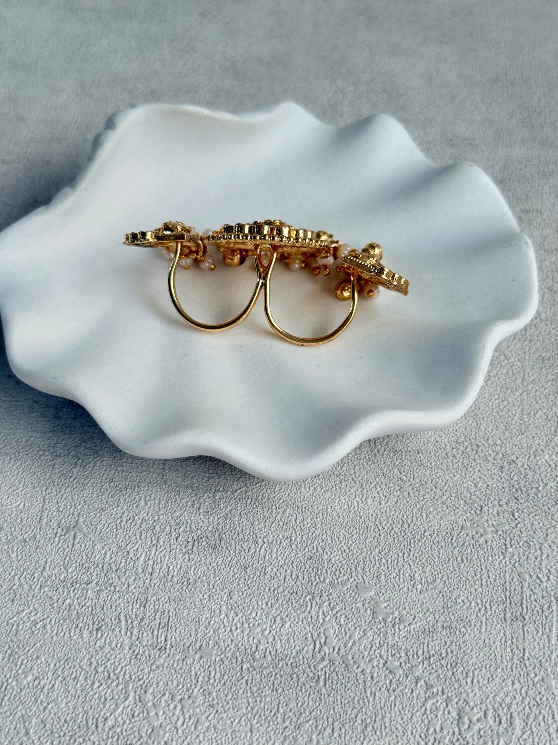 Fully adjustable and designed to span two fingers, the Nira ring is perfect for weddings, festive occasions, and statement styling. A striking piece that pairs effortlessly with traditional outfits while standing out as a true centrepiece.