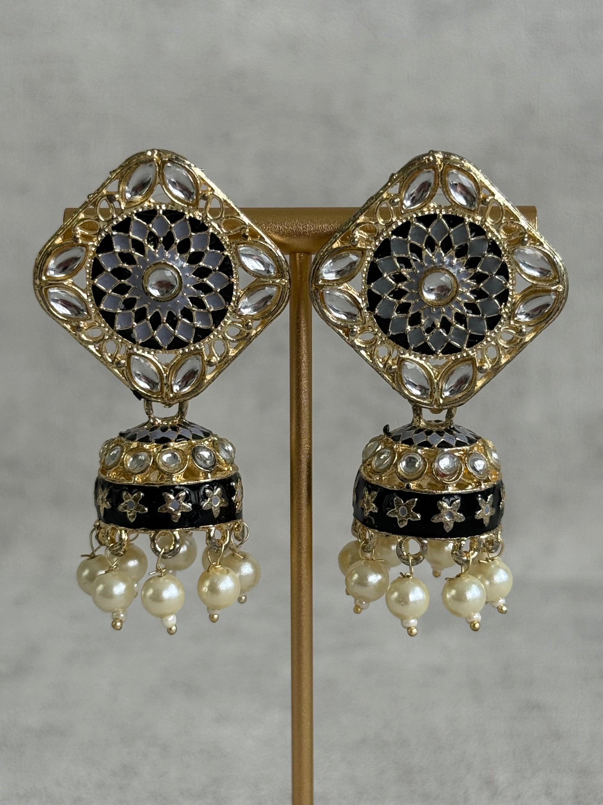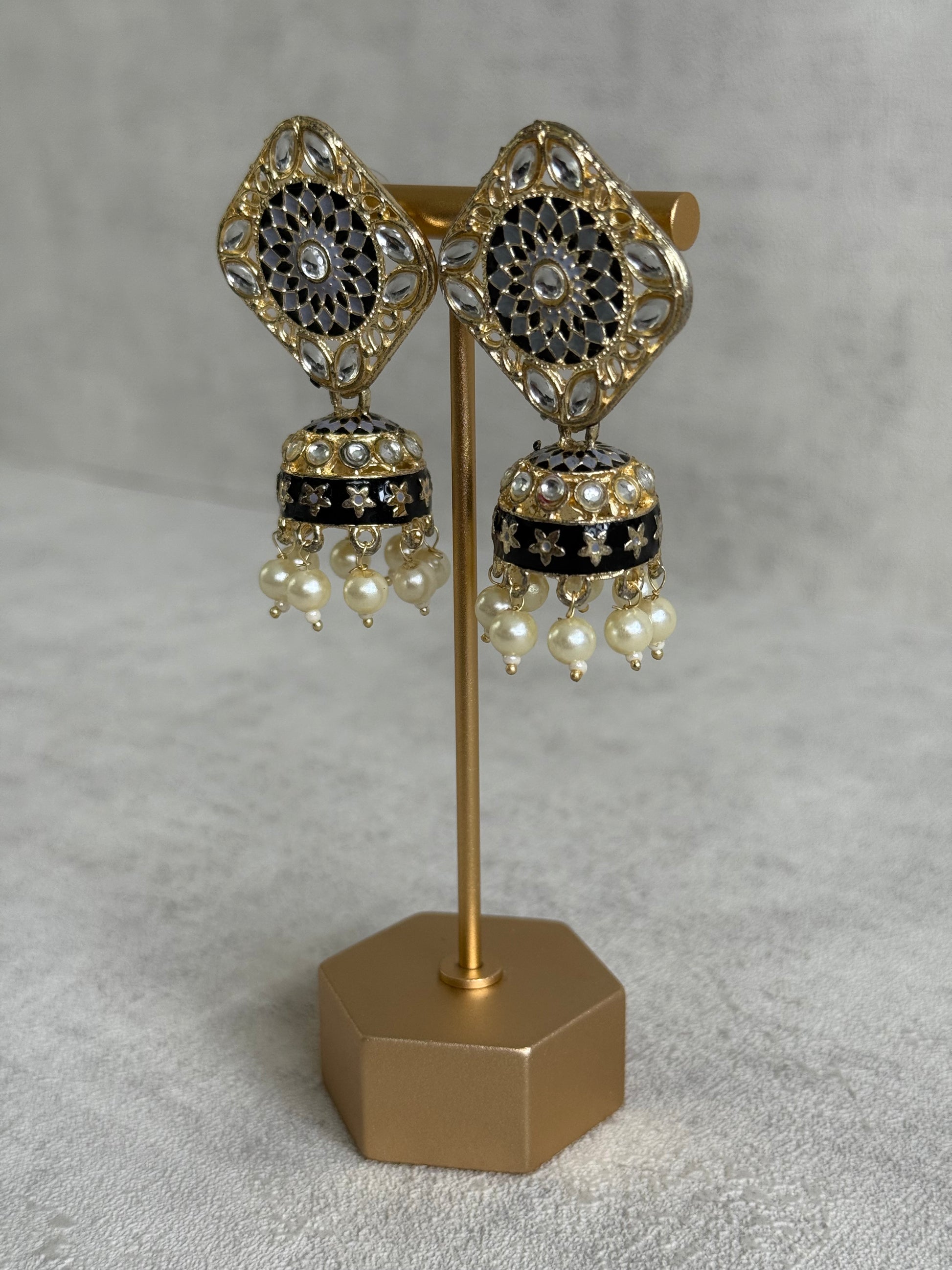 Perfect for evening wear, festive occasions, and statement styling, these earrings bring a timeless, striking elegance to traditional and contemporary looks alike.