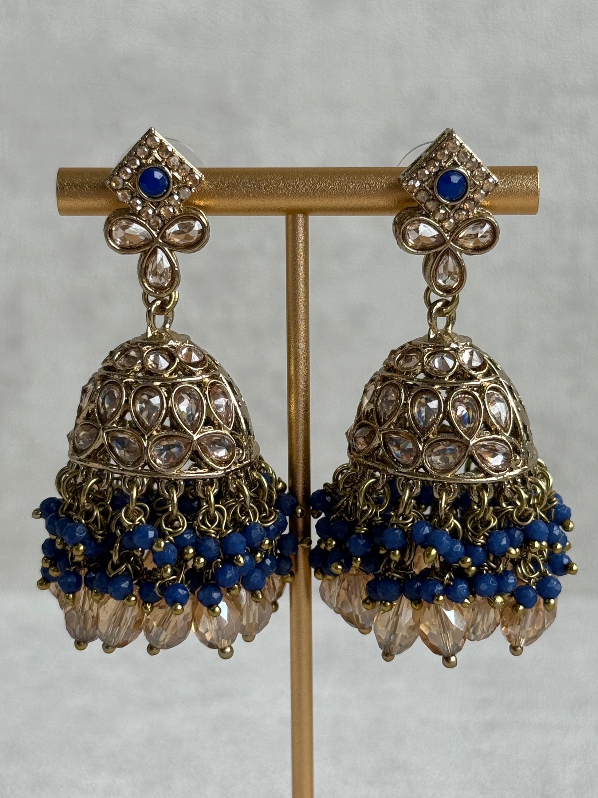 The colour pairing of ink blue and champagne is both moody and majestic—offering depth, warmth, and contrast in every shimmer. The ink blue beads add an intense richness without overpowering, making this set perfect for evening wear, receptions, or formal celebrations. Set in a delicately aged gold tone, the Rayna Set nods to timeless jadau artistry while maintaining a fresh, fashion-forward edge.