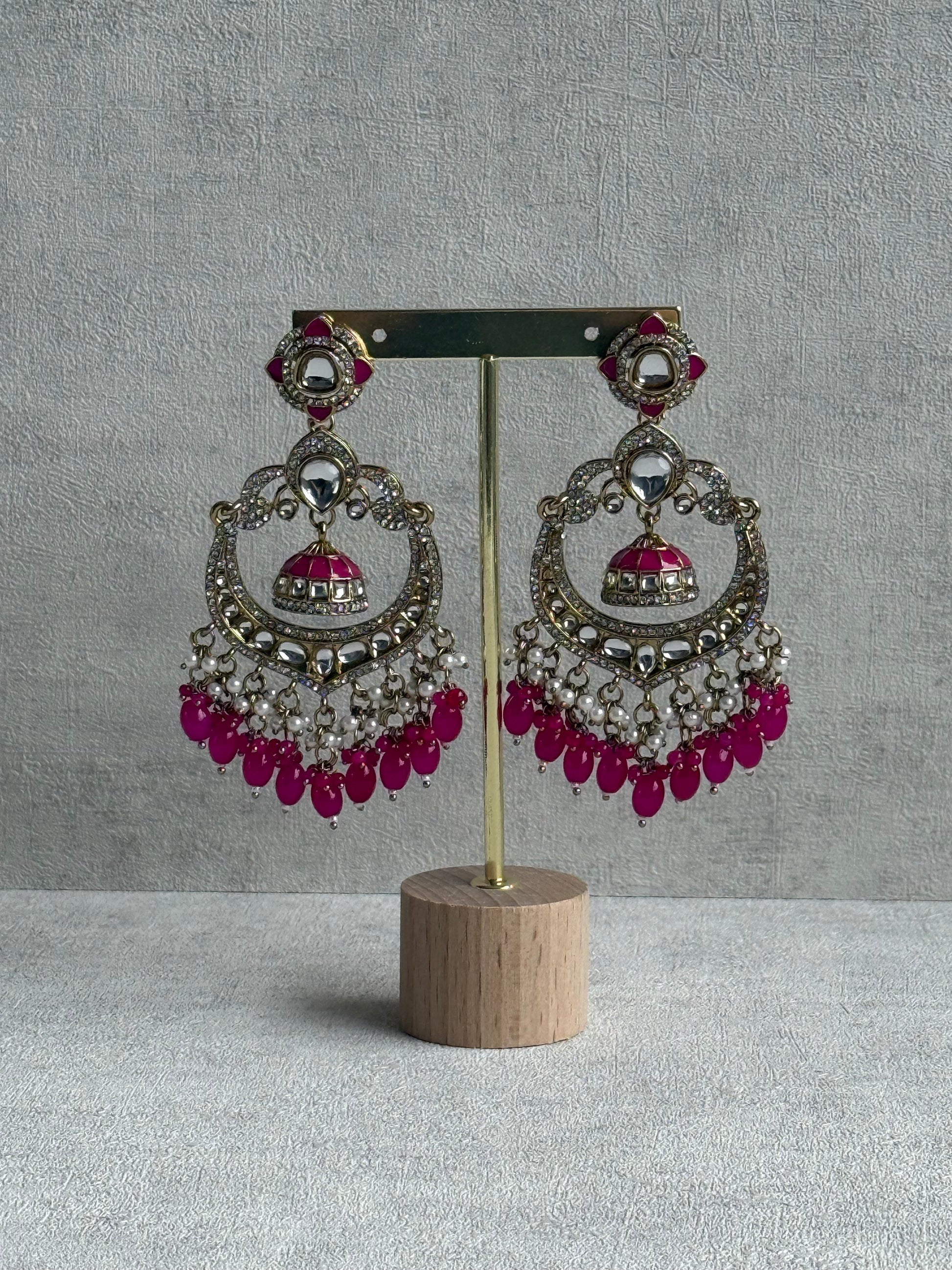 The mirror-cut stones catch the light beautifully, creating a dance of reflections with every turn. The pink enamel detailing and pearl fringe add a layer of regal femininity, making them perfect for mehndi evenings, festive parties, or wedding celebrations.