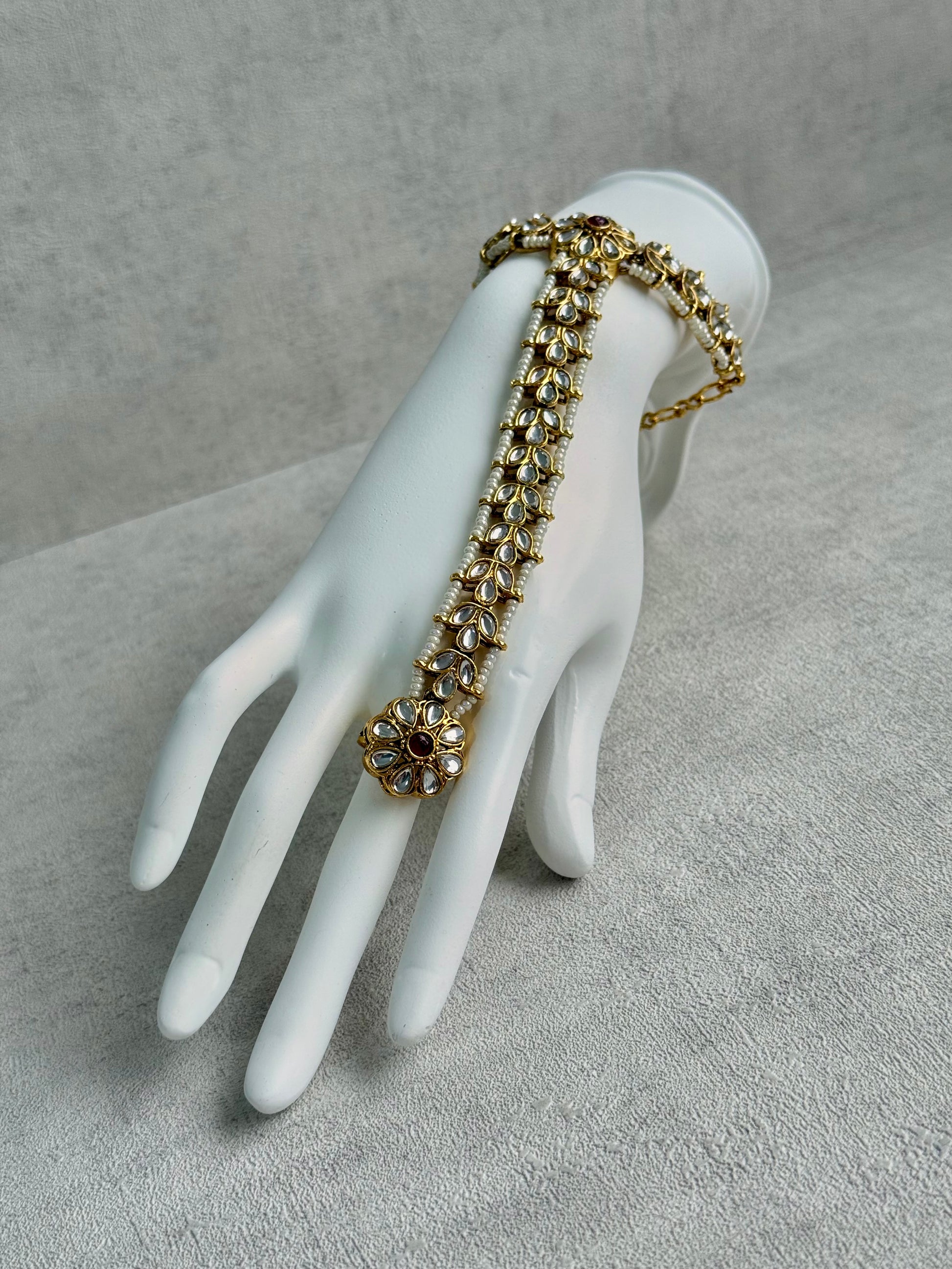Timeless yet understated, the Ruya Haathphool pairs effortlessly with kundan jewellery, pearl sets, or classic gold ensembles — a versatile statement piece for those who love refined, traditional details.