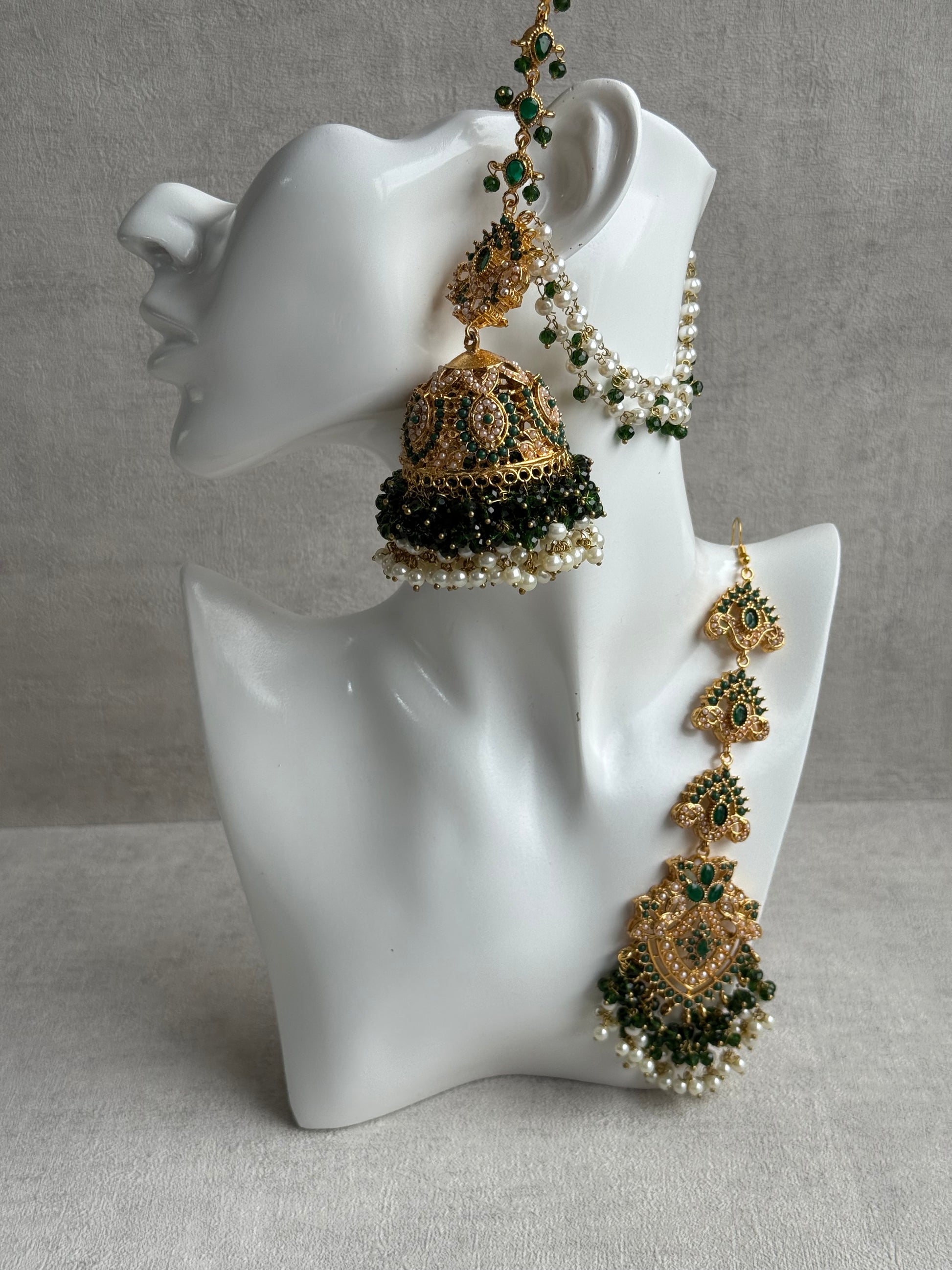 Whether styled with a traditional outfit or as a statement addition to a contemporary ensemble, the Safia Tikka Set in Emerald Green is a true head-turner — graceful, intricate, and timeless.