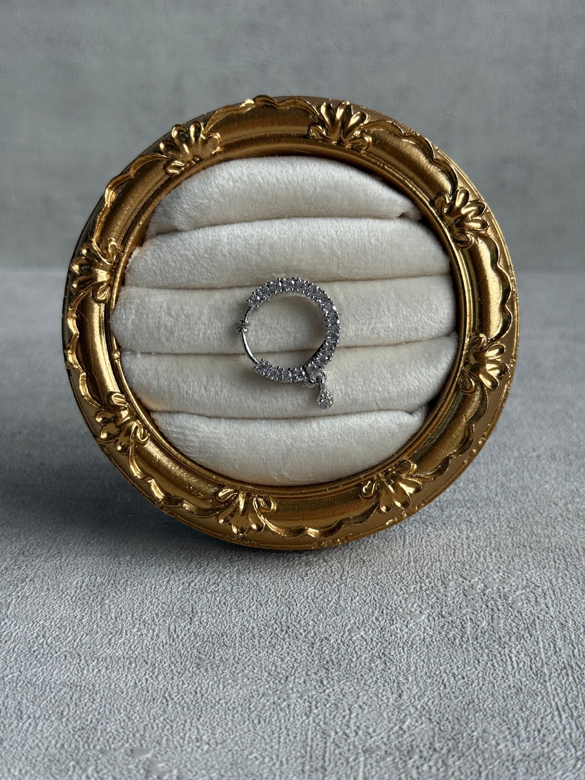 The Sitara Nose Ring is a refined statement piece designed to add subtle sparkle with timeless elegance. Featuring a circular silhouette adorned with crystal detailing, it offers a classic look with a polished finish.