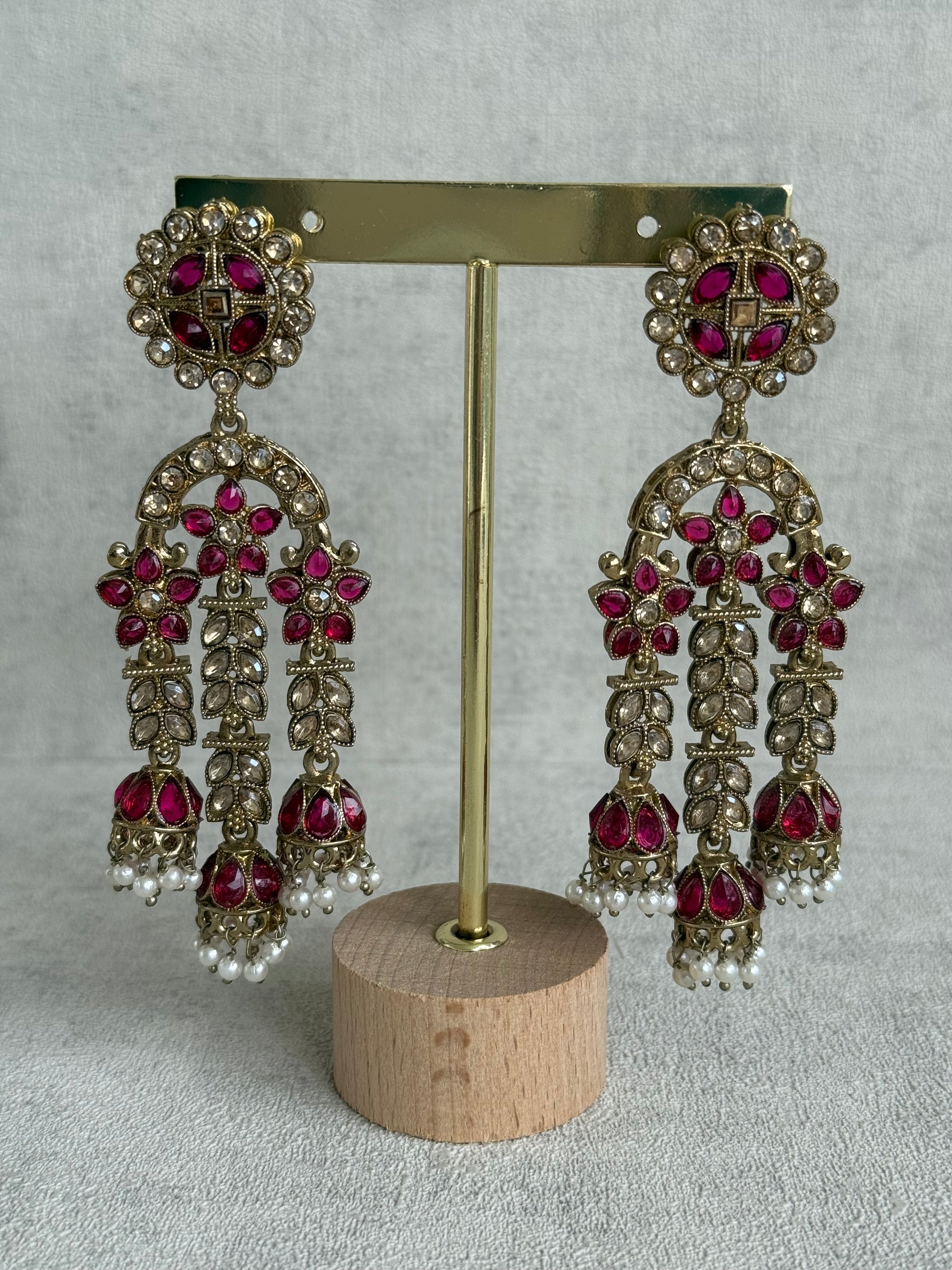 Ayura Designs Soraya Earrings – Fuchsia & Champagne Stones with Pearl Drops & Gold Finish