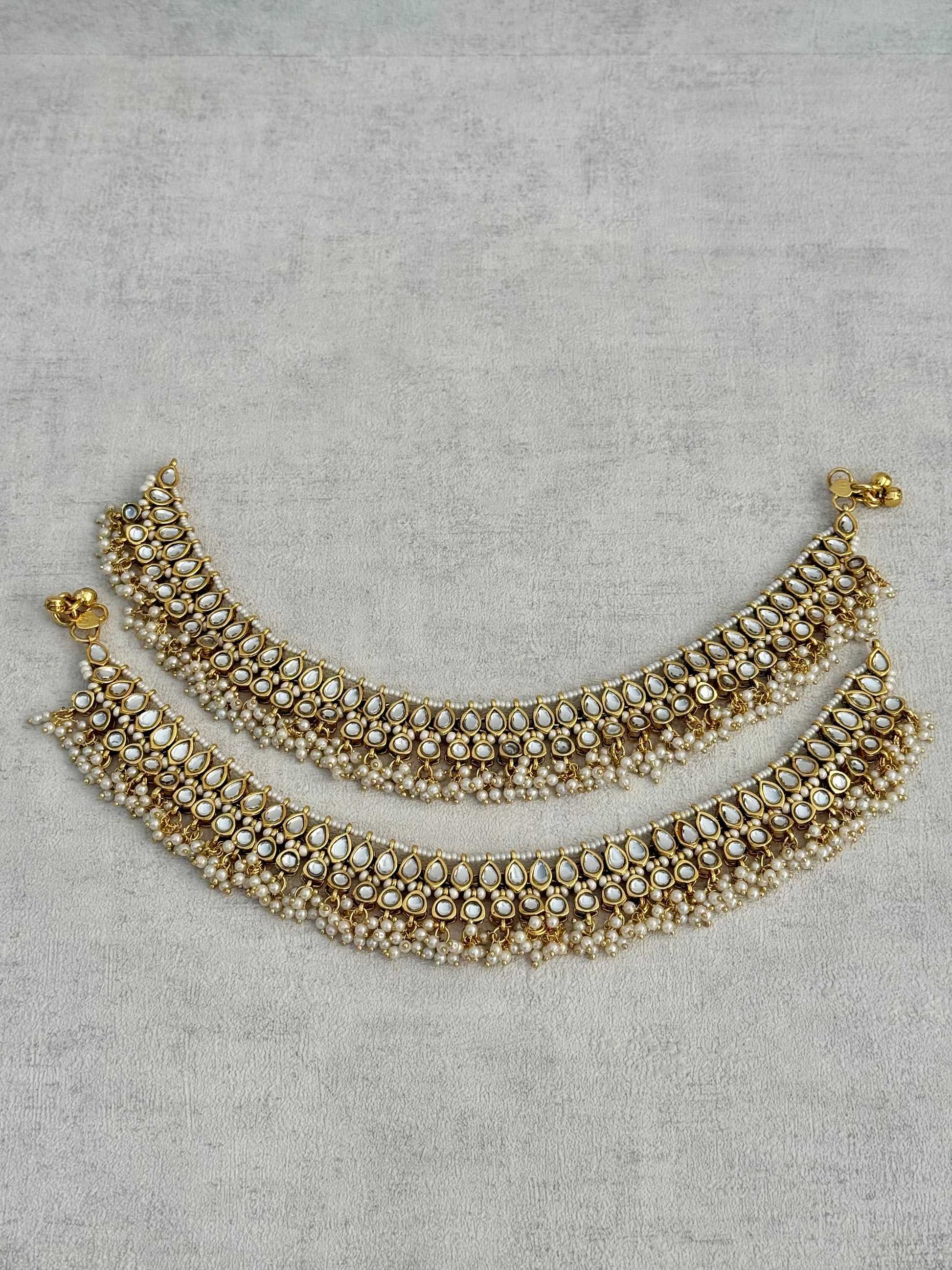 Ayura Designs Zanzi Payals – Kundan Teardrop Anklets with Pearl Cluster Detailing