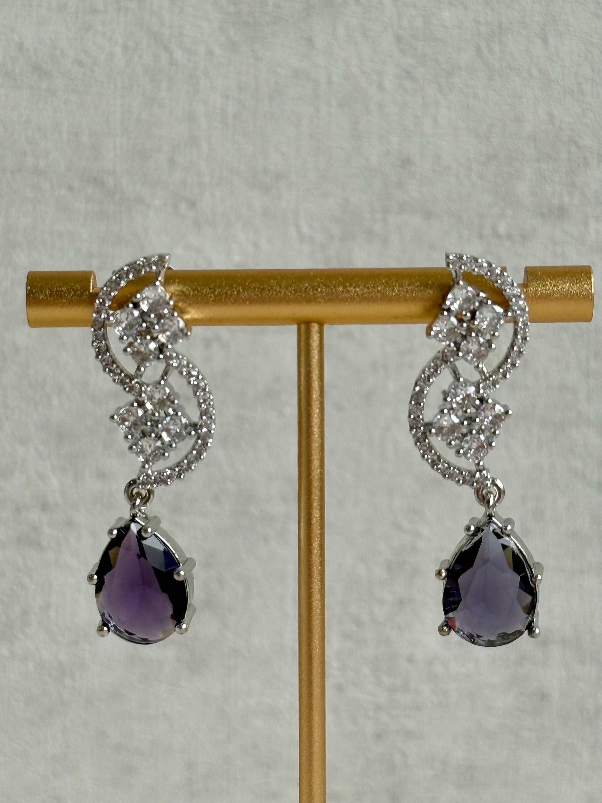 Each purple stone is precisely cut to reflect light with subtle fire, catching attention with every turn. The layered design of the necklace adds volume and luxury while sitting comfortably on the collarbone. Whether styled for an evening event or a formal occasion, this set brings a graceful drama to any ensemble.